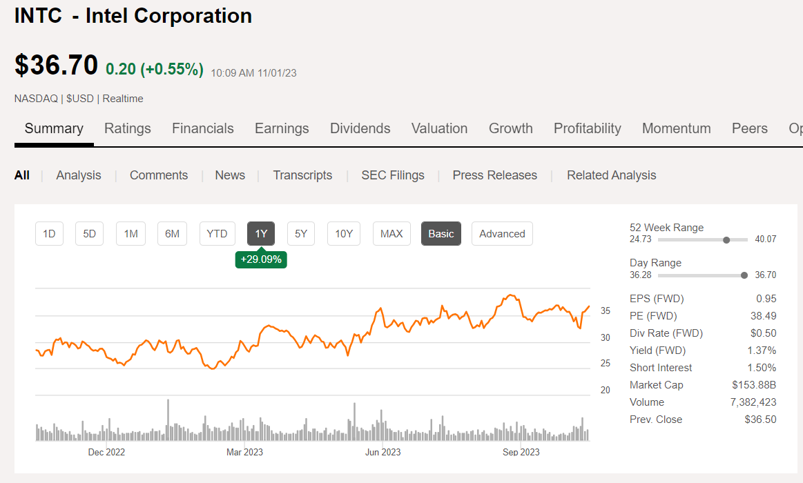 저평가 주식: 인텔의 PE 비율이 낮다는 것은 주식이 현재 저평가되어 있을 수 있음을 시사합니다.